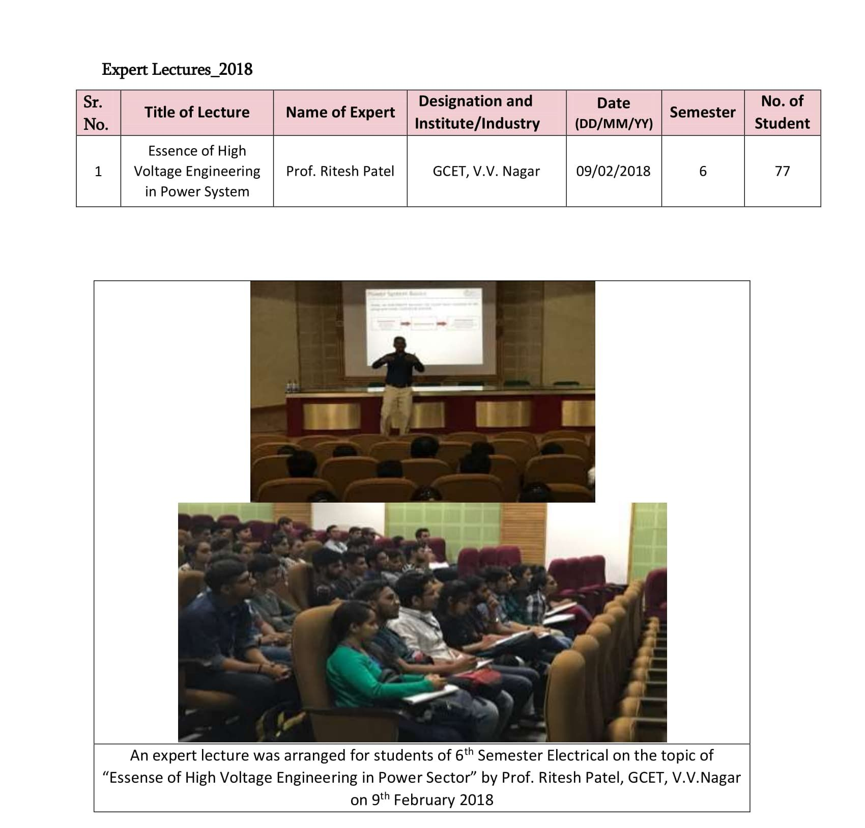 Lecture on “Electronics in Power Systems-Changing paradigms” by Dr.V.K.Shah from ABB India Ltd on 4 January 2019