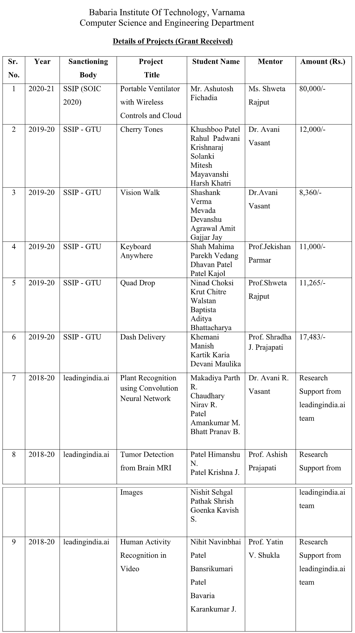 R & D : CSE Department